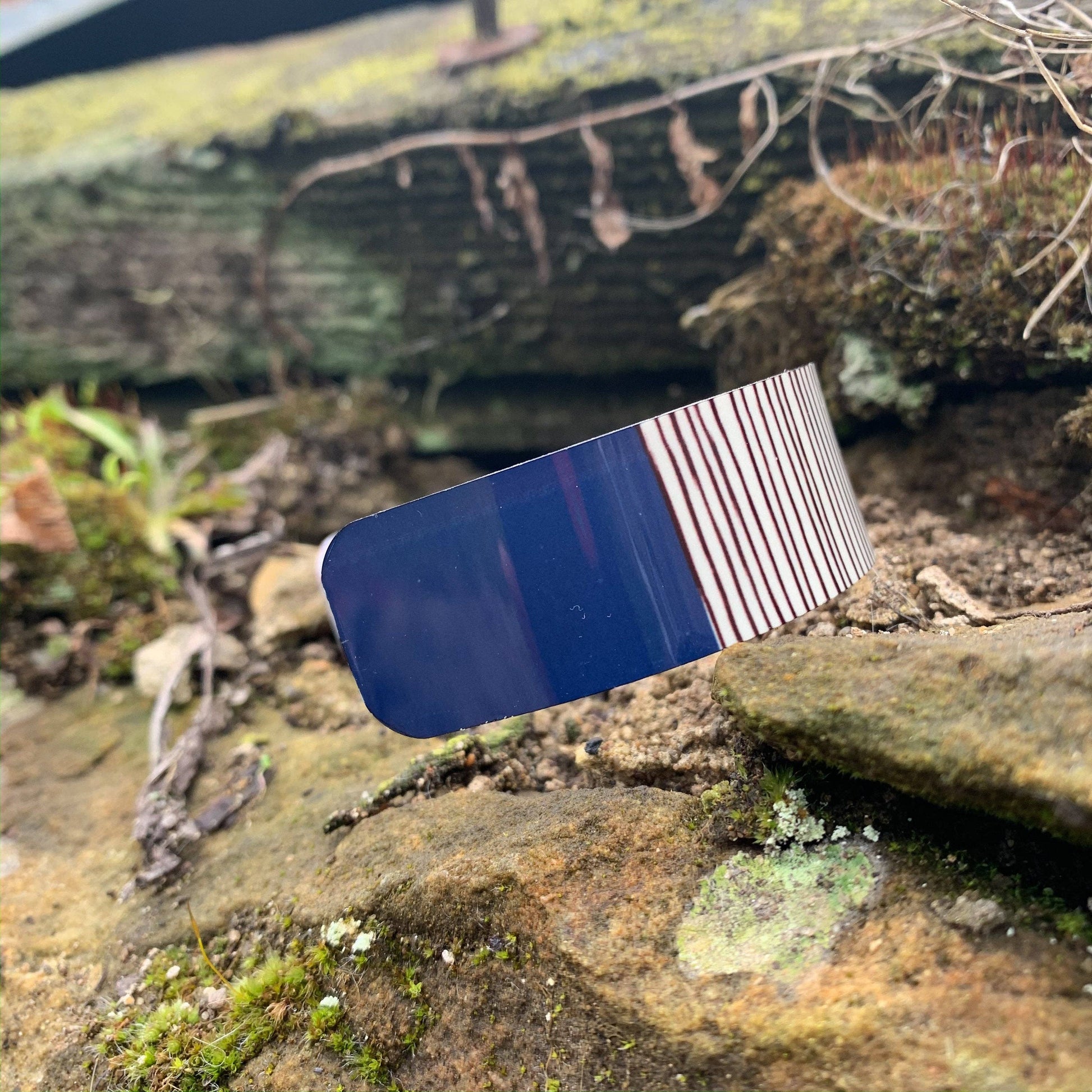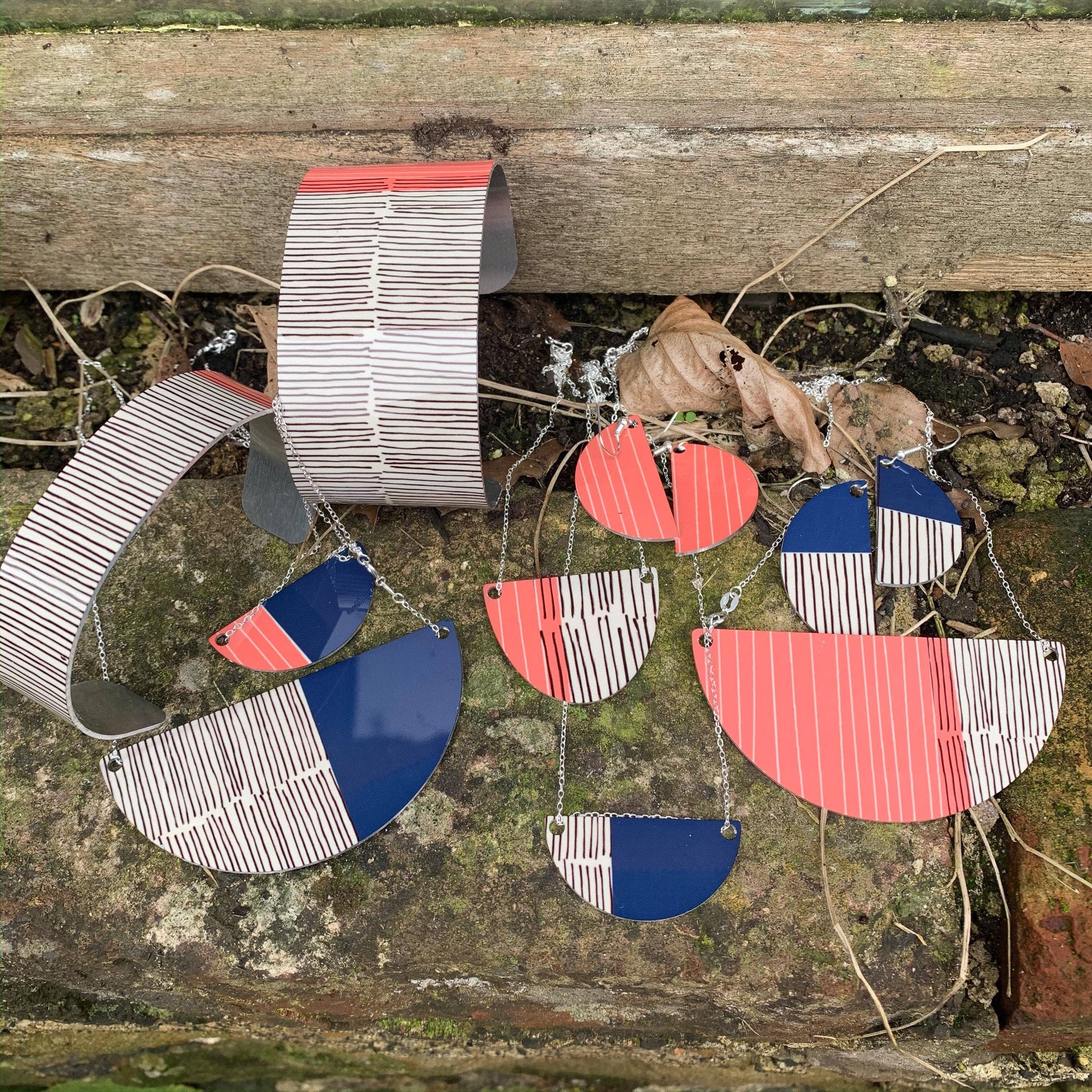 Hand printed statement cuff bracelet. Made from lightweight, hypo-allergenic aluminium. Gift Boxed.
