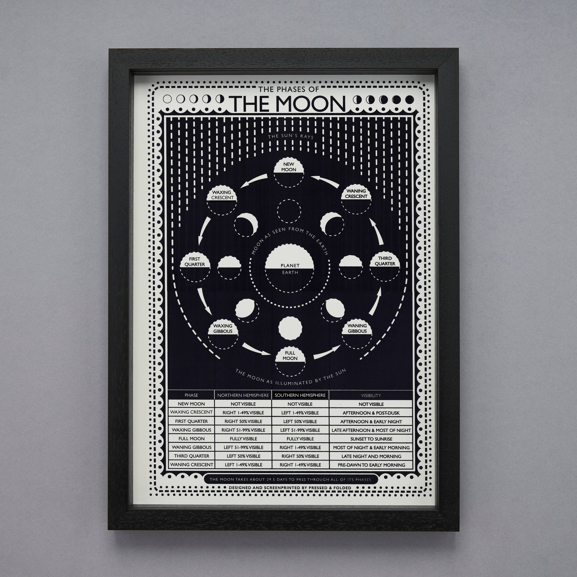 Pressed and Folded Phases of the Moon Diagram Screen Print