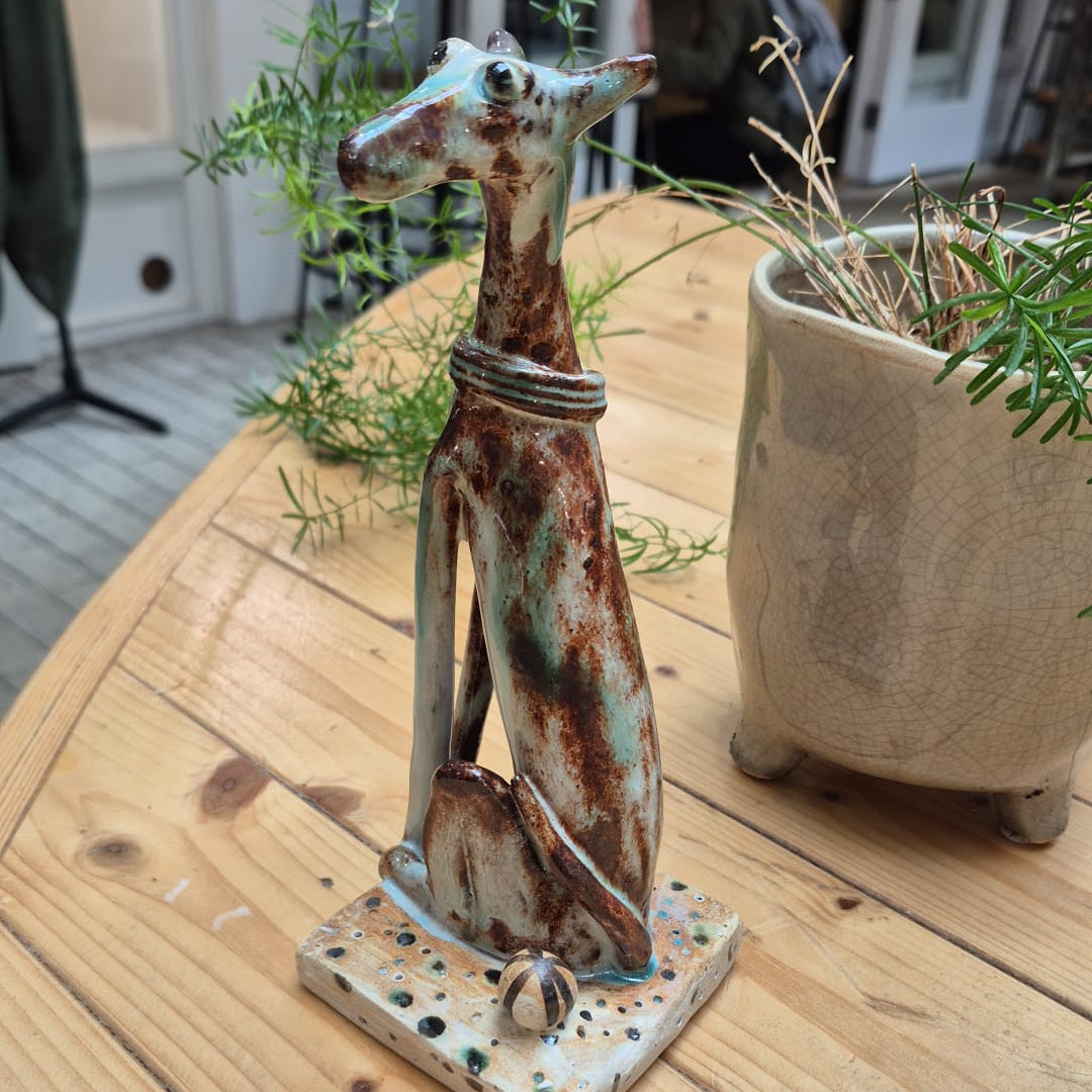Made from Cornish clay and glazed in copper, cobalt and manganese oxide.